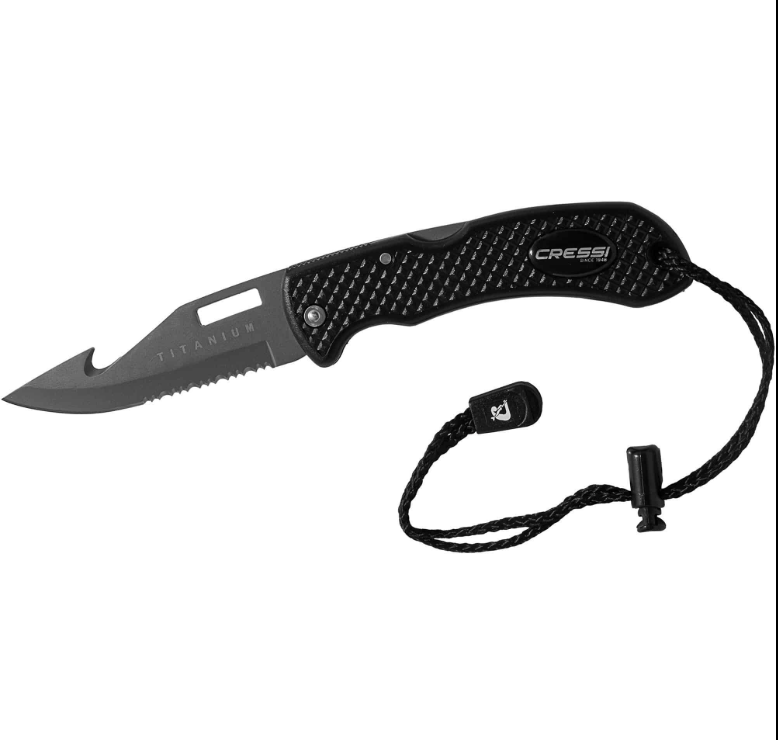 Foldable-blade design for versatile use in scuba diving and spearfishing.